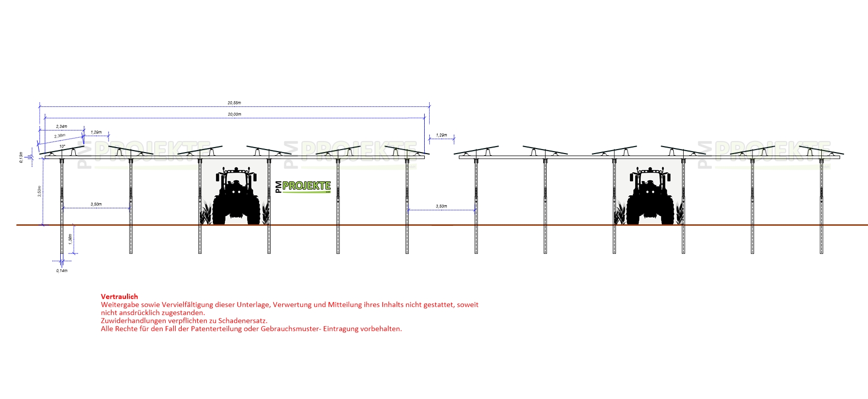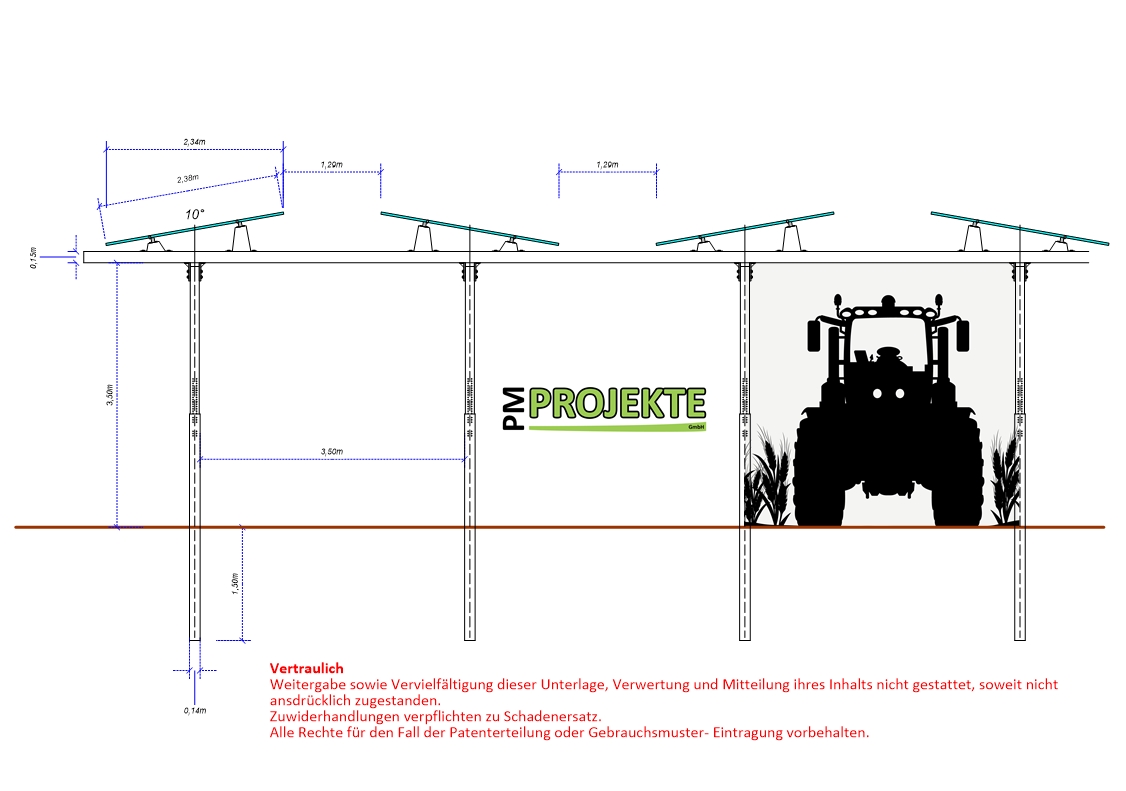 Die minimale Flächennutzung von unter 0,5 m pro Trackerreihe entspricht den DIN-Vorgaben und anderen normativen Anforderungen.